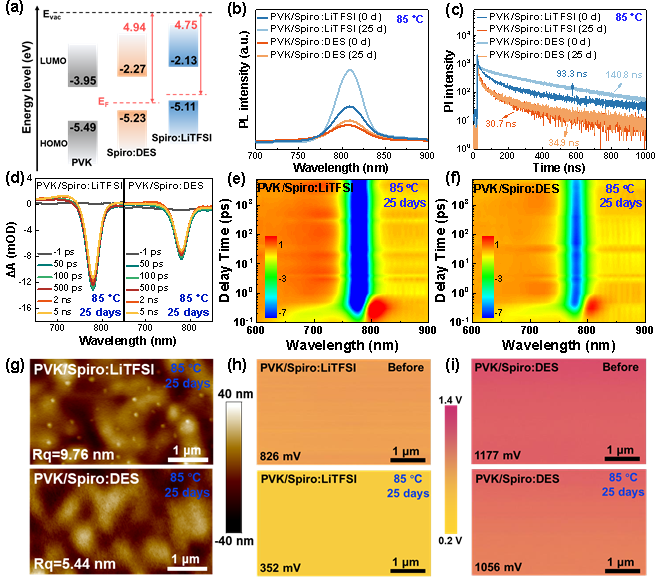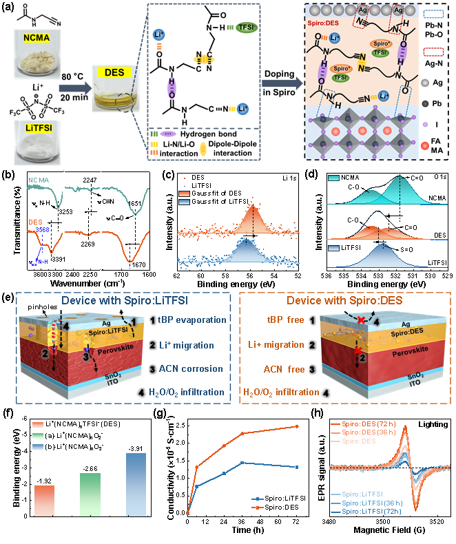 DES作为唯一掺杂剂成功引入spiro-OMeTAD体系