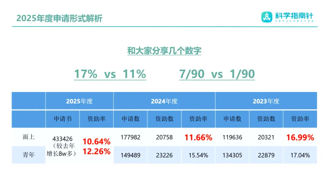 数据显示,2025年面上项目申请量预计将达到43.3万份,但资助率可能进一步降至10.64%。随着近年获批的青年项目负责人陆续进入面上项目申请阶段,未来几年各类项目的资助率预计将继续下探,面上项目资助率很可能在不久后跌破10%这一心理关口。