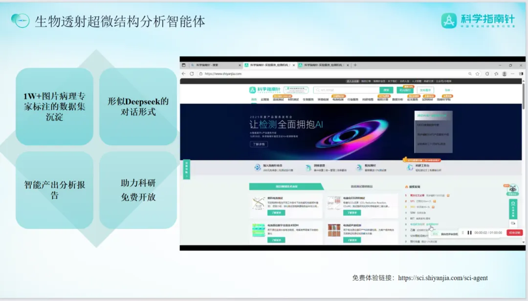 【摘要】 科学指南针生物业务团队受邀出席2025全国生命科学电子显微学研讨会,发表《生物电镜AI图像智能分析应用》主题报告,分享智能下单、云视频、AI图像识别、超微结构分析四大核心服务体系,推出免费生物透射超微结构分析智能体工具。