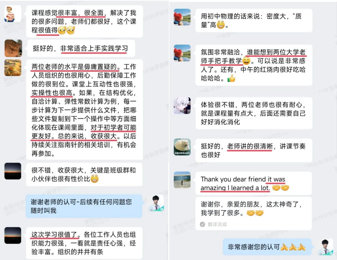学员反馈显示,本次培训获得"密度大、质量高"的评价。有学员表示:"课程内容非常全面,解决了我的很多实际问题,老师们非常负责,手把手指导让人感动。"另一位学员补充:"互动性和实操性极强,组织工作也很用心,收获远超预期。"