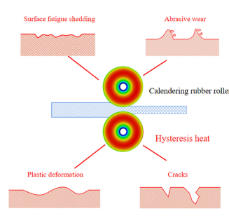 如图1所示,滞热会导致胶辊表面疲劳、磨损或断裂,需频繁更换,影响生产效率。机械负载频率、橡胶配方及环境条件均会加剧材料疲劳。