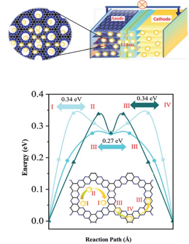 案例参考:Journal of Materials Chemistry A研究展示C₃N₂材料中锂离子吸附能与迁移能垒关联。