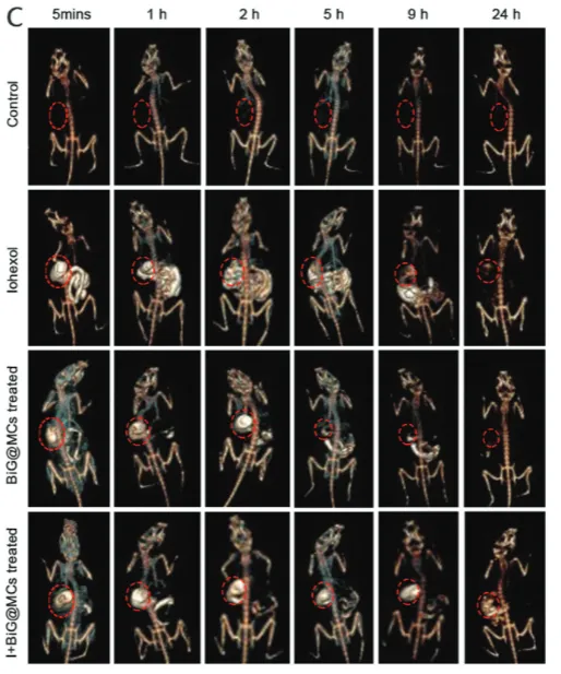除优异的抗 HP 活性外,BiG@MCs 微胶囊的铋组分赋予 CT 成像功能,体外信号强度优于碘海醇,可实现胃内实时示踪;在小鼠胃溃疡模型中,其溃疡愈合效果为 CBS 的 2.32 倍,且经验证无器官损伤,安全性良好,具备良好的临床转化前景。