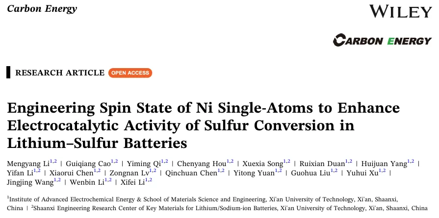 单原子催化剂因原子利用率高、活性位点丰富,成为改善锂硫电池反应动力学的关键材料,其中 Ni 基单原子催化剂应用尤为广泛。但现有研究多聚焦杂原子修饰与配位数调控,自旋态对催化性能的影响机制尚不明确,成为科研与应用中的重要瓶颈。