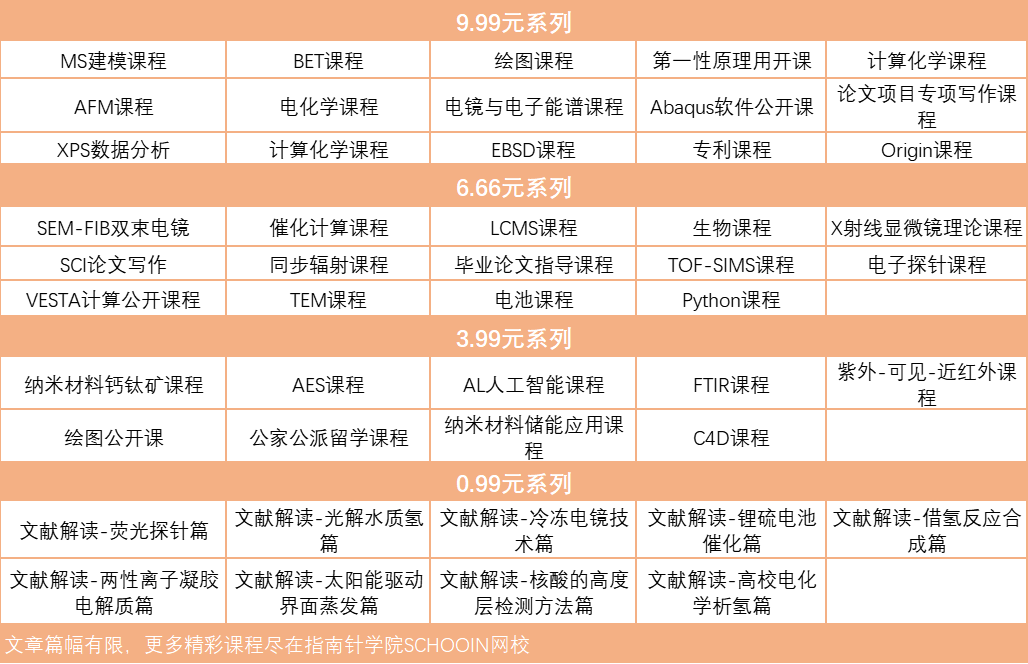 1.课程种类丰富:已开过的课程有电化学、计算化学、电子探针、电镜与电子能谱、红外FTIR、AFM、论文项目撰写等等。