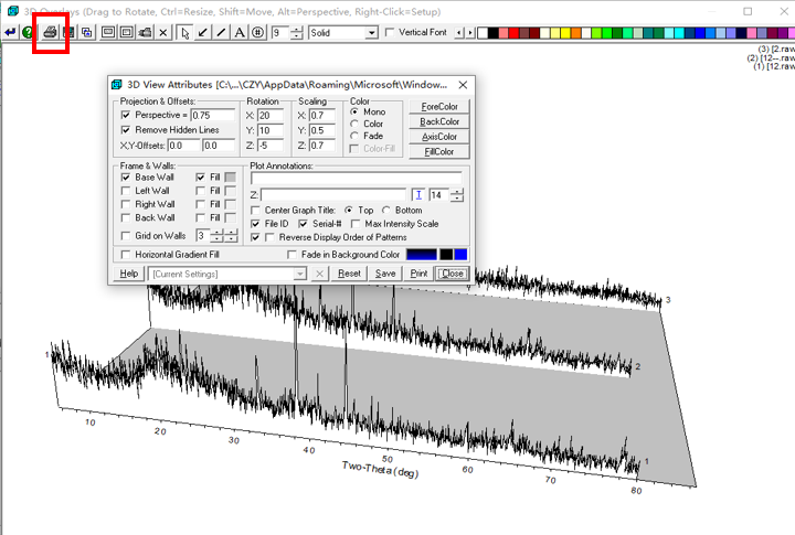 如果同时显示的谱线数大于2,可以采用 3D 显示方式。