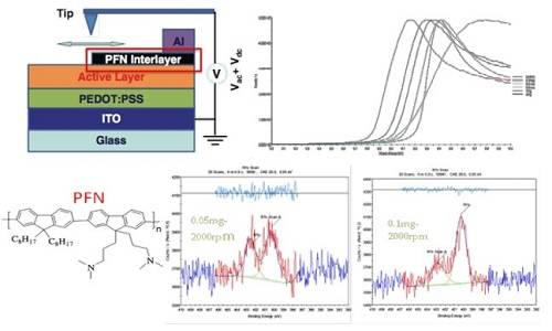 在有机太阳能电池的电极上添加PFN层,能降低其逸出功,有利于载流子传导到电极上,从而提高器件效率。