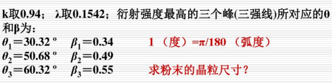 该公式使用时应当注意:1)半峰宽β为衍射强度为极大值一半处的宽度,单位以弧度表示;2)计算出来的晶粒大小,只代表晶面法线方向的值,与其他方向的晶粒大小无关。3)k为影响因子,对球状的粒子k=1.075,立方晶体k=0.9,一般要求不高时取k=1;4)测定范围为3~200nm。