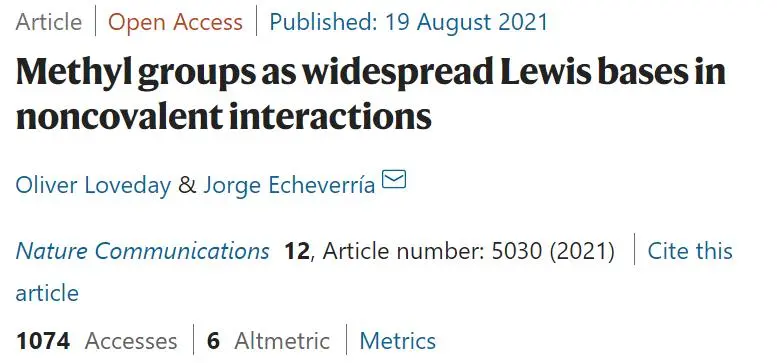 Loveday, O., Echeverría, J. Methyl groups as widespread Lewis bases in noncovalent interactions. Nat Commun 12, 5030 (2021).