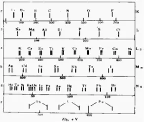 其中:hn:X光子的能量;Ek:光电子的能量;Eb:电子的结合能;Er:原子的反冲能量。其中Er很小,可以忽略。