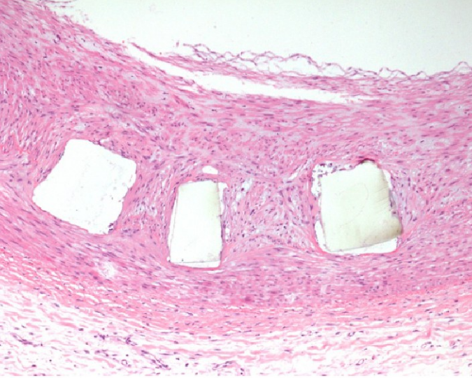 植入7天后显微观察显示,支架杆周围仅存在微量血栓附着。28天时血栓开始被肉芽组织包裹,90天后实现完全吸收且无新血栓生成,证明材料具有渐进式内皮修复特性。