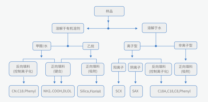 1)第一步:明确分离目标,基于目标物与干扰物的理化性质差异(极性、分子量、pKa等),选择匹配的填料类型(图3)