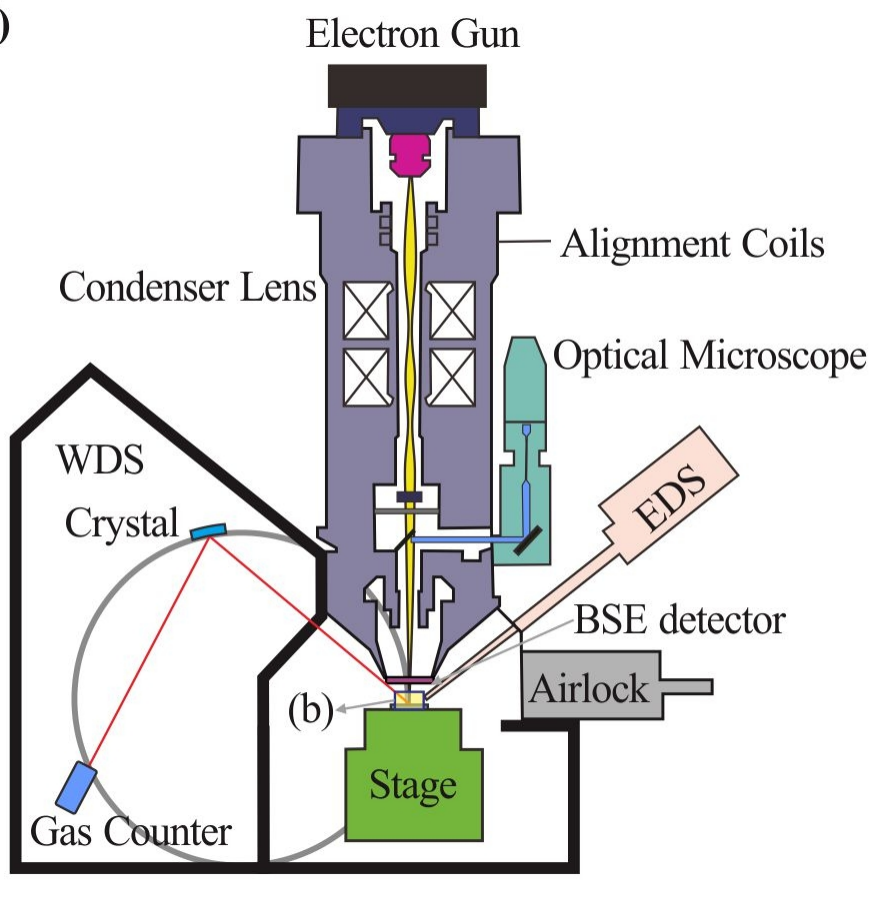 图1. 电子探针微分析仪的基本组件示意图。[1]