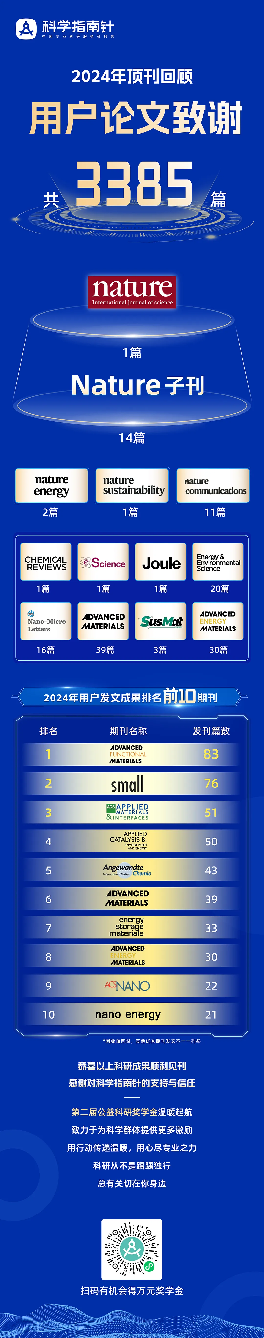 【摘要】 科学指南针已助力用户发表3385篇论文致谢,覆盖Nature、AM等顶级期刊!立即扫码领取首样免200元优惠,加速您的科研突破。