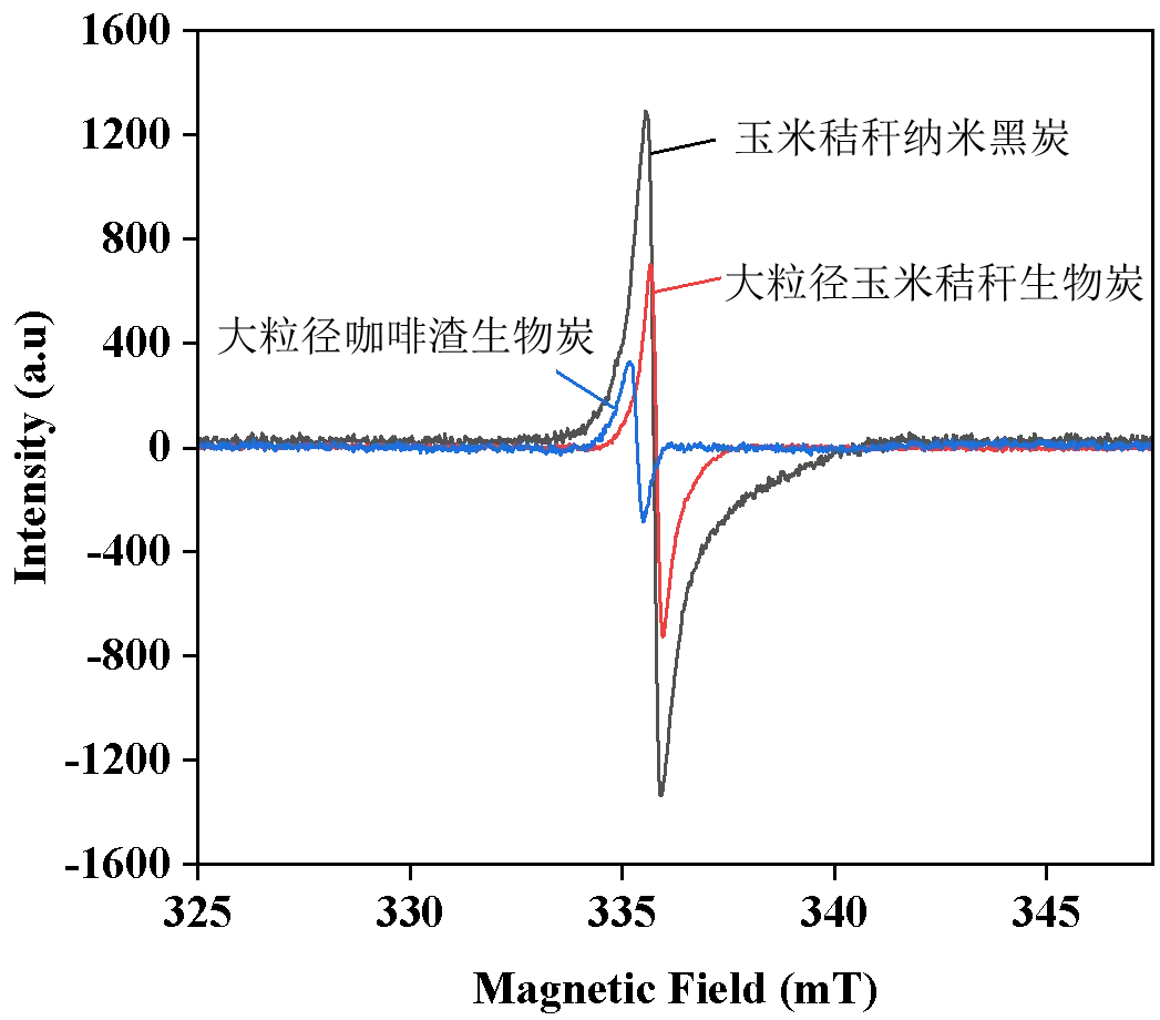 图7 纳米黑炭和大粒径生物炭的EPR信号