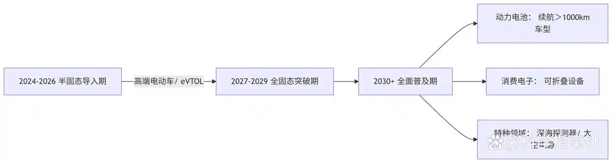 固态电池正穿越实验室到量产的最后关卡。尽管界面工程挑战和成本压力依然存在,随着材料基因组技术加速电解质开发、AI工艺控制提升制造精度,产业化进程已不可逆转。预计2027年将迎来首个规模化量产拐点,2030年全固态电池将在高端市场完成对液态电池的替代,最终推动电动航空、深海勘探等前沿领域实现能源革命。