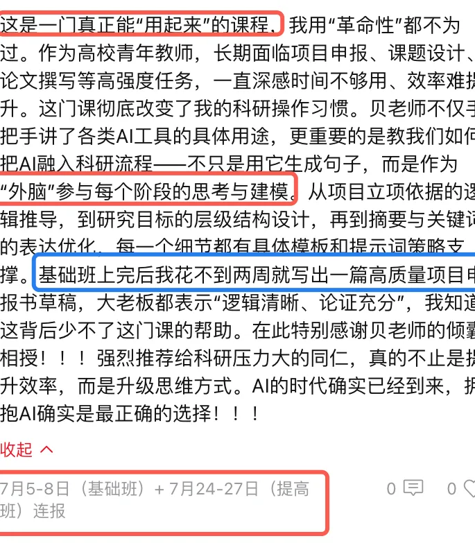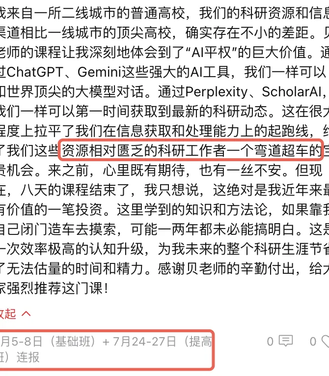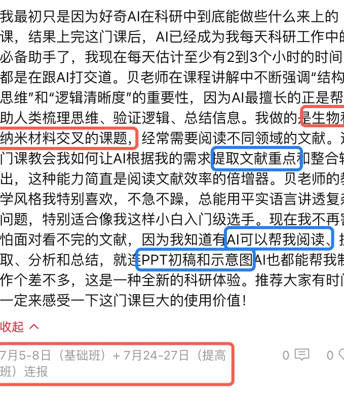 专注各类科研培训,从AI辅助科研到SCI论文插图绘制,学员反馈课程“更加系统全面”“深入浅出,实用到位”“是一门真正能用起来的课程”,同时课后实现“从无休止的论文修改中解脱”“对AI工具有了掌控感和自由度”“科研效率显著提升”。