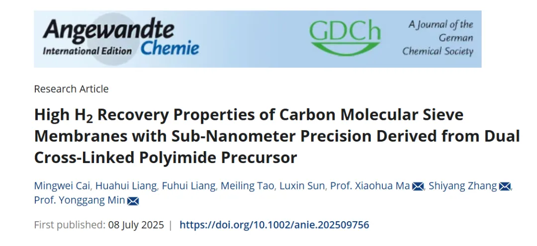 【摘要】 广东工业大学闵永刚团队开发了一种创新的双交联策略(结合DABA诱导的刚性A型网络和硫键诱导的柔性B型网络)设计碳分子筛膜(CMSMs)的微孔结构。该策略成功实现了亚埃级孔隙的精确调控,显著提升了氢气分离性能。所得CMS膜在850°C热解后展现出破纪录的气体分离选择性(H₂/CH₄: 6538; H₂/N₂: 1634; H₂/CO₂: 149),远超Robeson上限,为下一代高效节能氢纯化技术提供了可扩展的蓝图。
