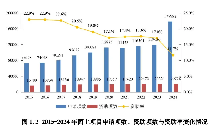 尽管2025年度具体数据尚未正式发布,但基于博士培养规模扩大、本土人才储备增强及海外学者归国趋势等多重因素,需求端预计仍将保持上升态势。若现行资助格局延续,面上项目资助率恐将突破历史低位。