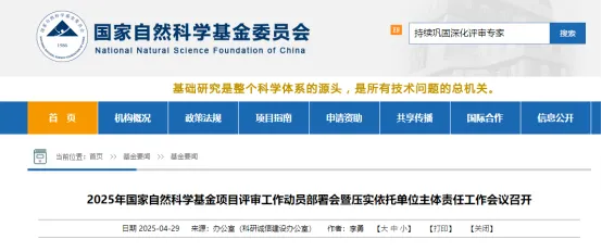 就在今年函评启动前夕,基金委在北京组织召开了“2025年国家自然科学基金项目评审工作动员部署会暨压实依托单位主体责任工作会议”,并从多方面透露基金委持续推进评审“公平合理”“防打招呼”的决心。