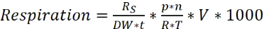 微生物呼吸速率(Respiration,ng C g-1 soil-1 h-1)的计算: