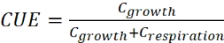 CUE = 用于微生物生长的碳 / (用于生长的碳 + 呼吸消耗的碳)