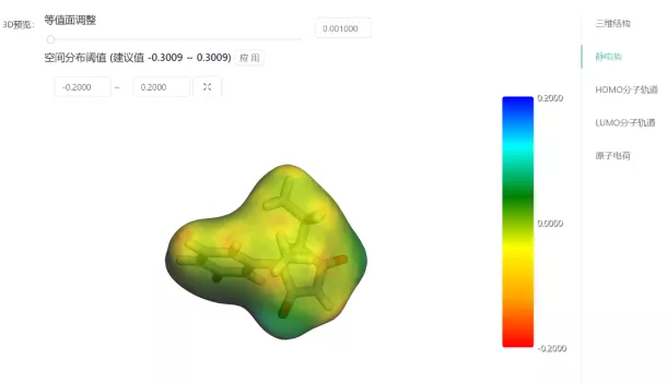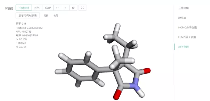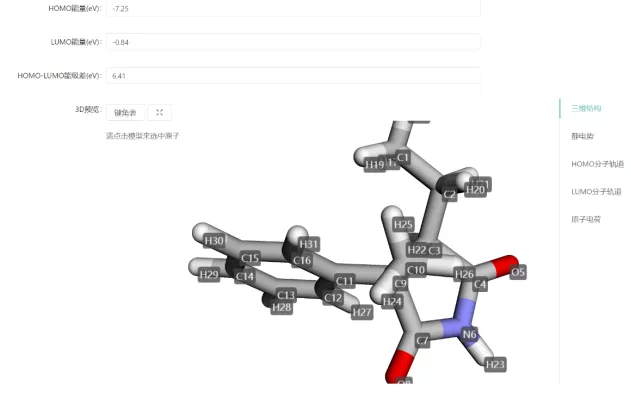 接下来点选各栏目,即可十分直观地展示该分子的基本计算化学性质。