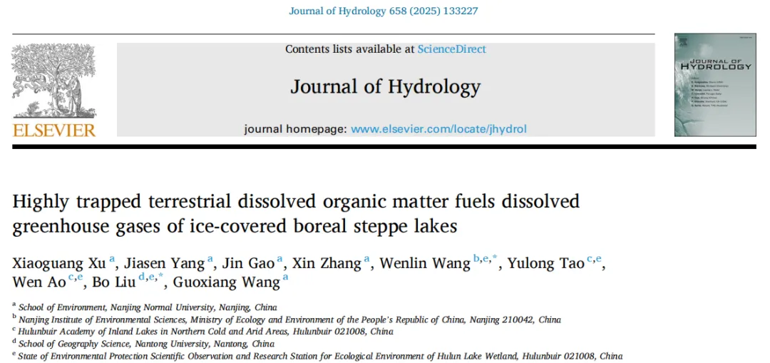 本研究发表于《Journal of Hydrology》(一区TOP,IF=6.3),聚焦于中国内蒙古呼伦湖流域冰封期湖泊与河流中溶解性有机物(DOM)的组成、来源及其对温室气体(GHGs)产生的影响。研究通过多种先进分析技术,包括三维荧光-平行因子分析(EEM-PARAFAC)、傅里叶变换离子回旋共振质谱(FT-ICR MS)及16S rRNA高通量测序,揭示了陆源DOM输入在冰封环境下的转化机制与温室气体富集效应。科学指南针为本研究提供了关键的DOM分子组成分析服务(【科学指南针·FT-ICR-MS分析】)。