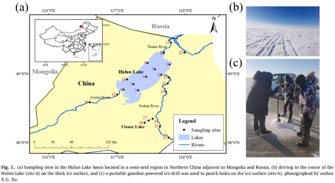 研究区域为内蒙古呼伦湖流域,包括呼伦湖本体、其主要入湖河流(如鄂尔逊河、新开河)及附属水体乌兰诺尔湖。采样点空间分布如图1所示,覆盖了湖泊中心、河流上游与下游等不同水文单元。