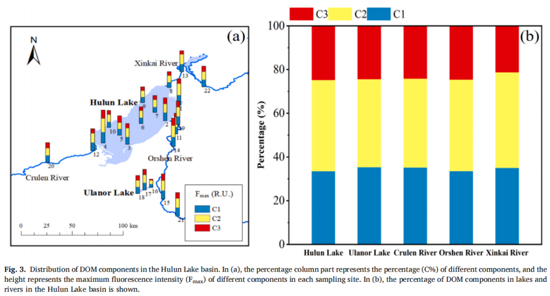Fig.3:呼伦湖流域溶解有机物(DOM)各组分的分布情况
