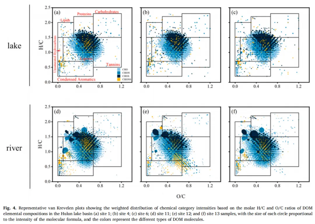 Fig. 4:呼伦湖流域溶解有机物(DOM)分子的元素组成及其分布特征