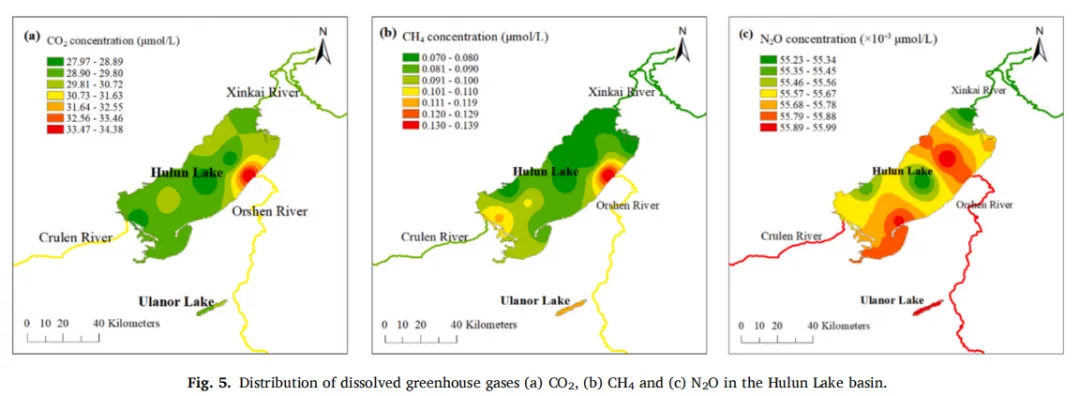 Fig. 5:呼伦湖流域温室气体的空间分布情况