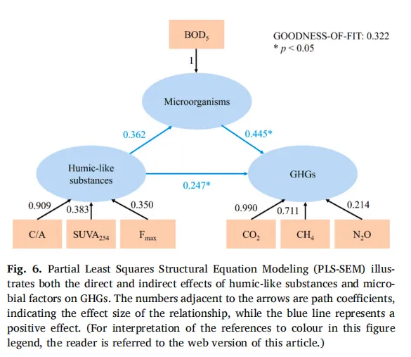 统计建模:偏最小二乘结构方程模型(PLS-SEM)量化DOM、微生物与GHGs的因果关系。