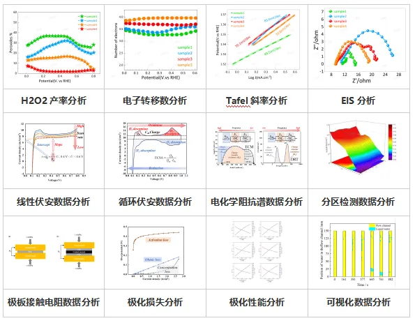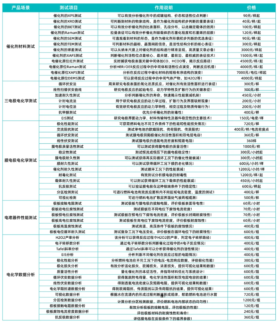 氢能-燃电领域覆盖了从“催化剂材料的开发到膜电极(MEA)性能分析到电堆零部件测试”的全面的产-学-研体系化的检测分析产品。