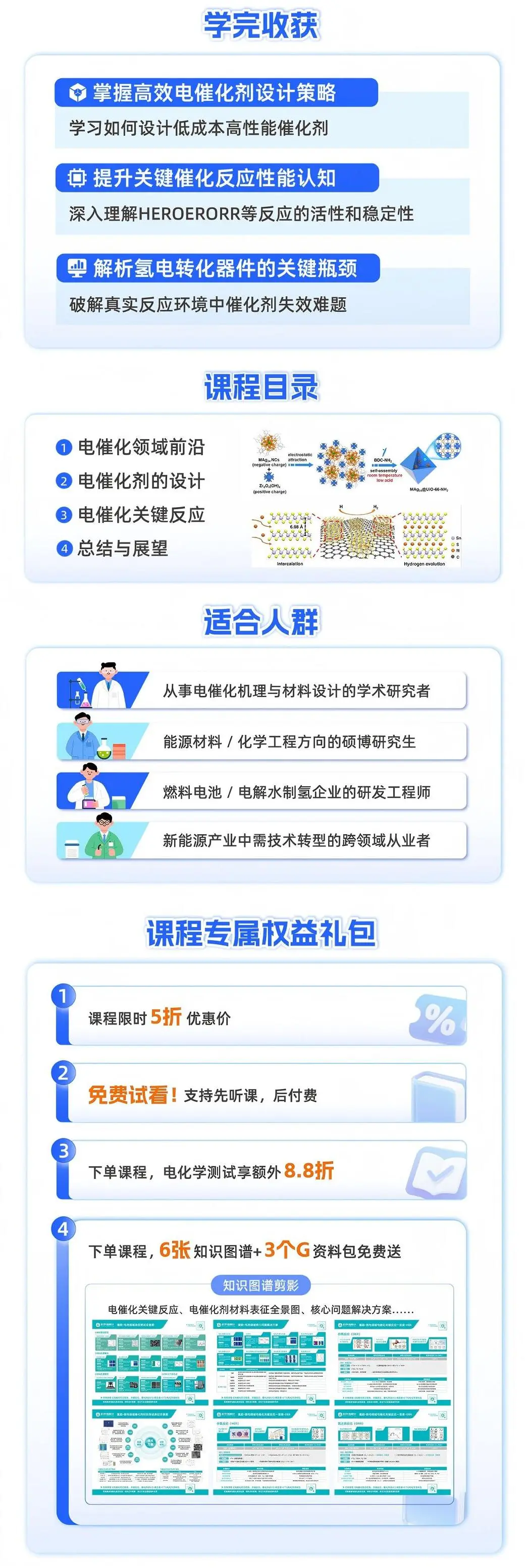电催化作为电化学技术的核心研究方向,常遇见反应机理复杂、催化剂设计难等问题。课程系统解析电催化领域的前沿动态、核心反应机理与先进催化剂设计策略。帮你掌握高效电催化剂设计策略,提升关键催化反应性能认知,解析氢电转化器件的关键瓶颈!⬇️