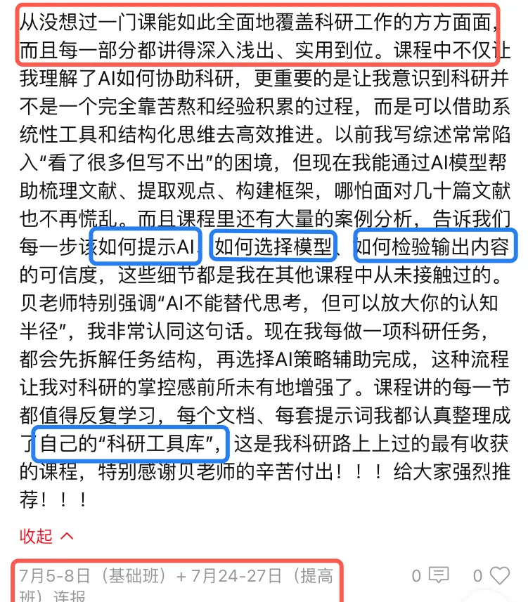 专注各类科研培训,从AI辅助科研到SCI论文插图绘制,学员反馈课程“更加系统全面”“深入浅出,实用到位”“是一门真正能用起来的课程”,同时课后实现“从无休止的论文修改中解脱”“对AI工具有了掌控感和自由度”“科研效率显著提升”