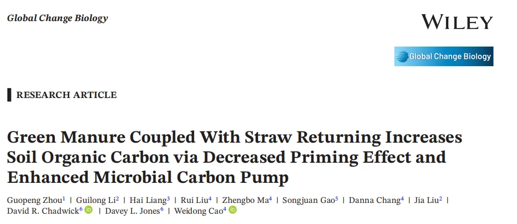 Green Manure Coupled With Straw Returning Increases Soil Organic Carbon via Decreased Priming Effect and Enhanced Microbial Carbon Pump  绿肥结合秸秆还田通过降低激发效应和增强微生物碳泵提升土壤有机碳