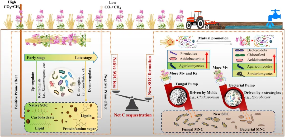 精确定位了主导SOC矿化和新SOC形成的关键微生物,为开发定向调控微生物以提升碳固持效率提供了目标和理论基础。