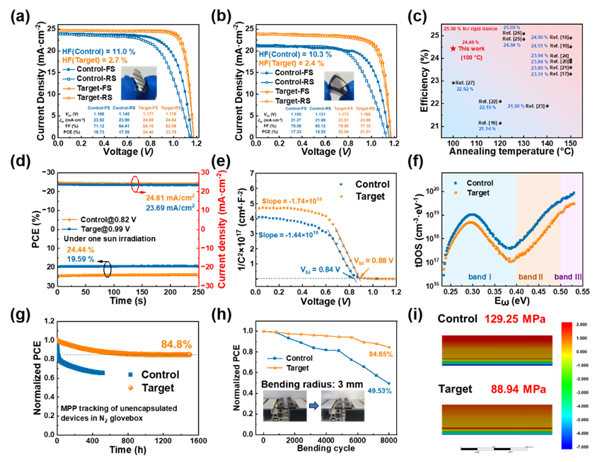 柔性器件效率达24.46%(0.04cm²)和22.04%(1.01cm²)