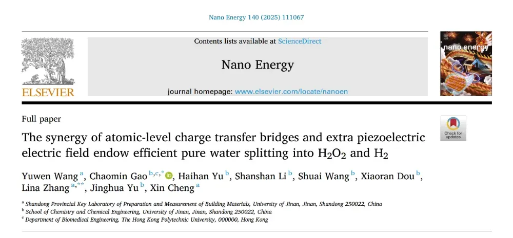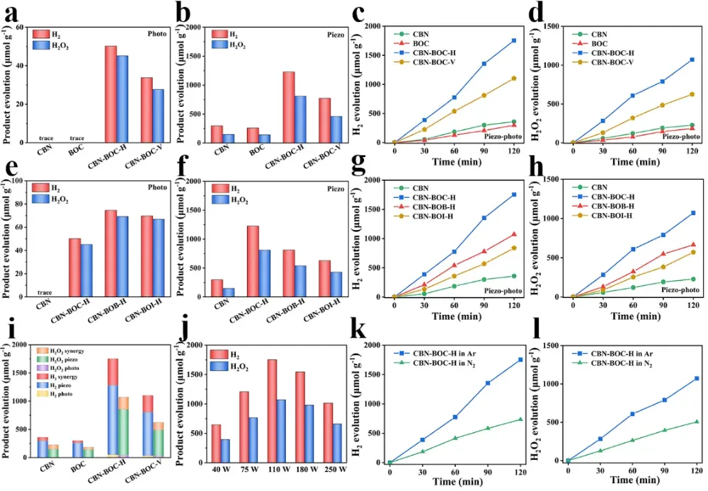 显著提升压电-光催化纯水分解性能,H₂和H₂O₂产率分别达到1753.2 μmol·g⁻¹和1071.2 μmol·g⁻¹