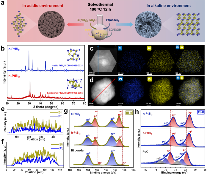 研究团队通过精确调控溶剂热合成条件,成功制备立方相PtBi₂金属间化合物,突破传统铂基催化剂性能限制。