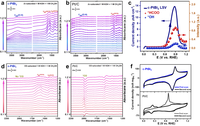 原位FTIR显示立方相PtBi₂具有更高*OH覆盖度