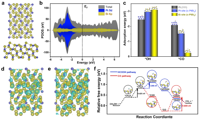 Bi引入优化Pt电子结构,增强OH吸附,减弱CO吸附