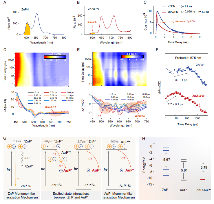 图3. 光激发下ZnAuPN的能量和电荷转移