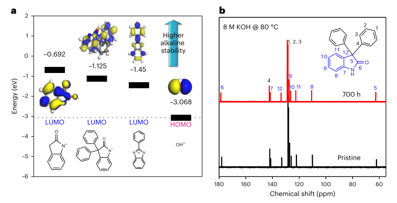 研究团队通过理论计算指导的分子设计,开发具有高稳定性的吲哚/KOH移动离子对结构,突破传统离子膜材料限制。