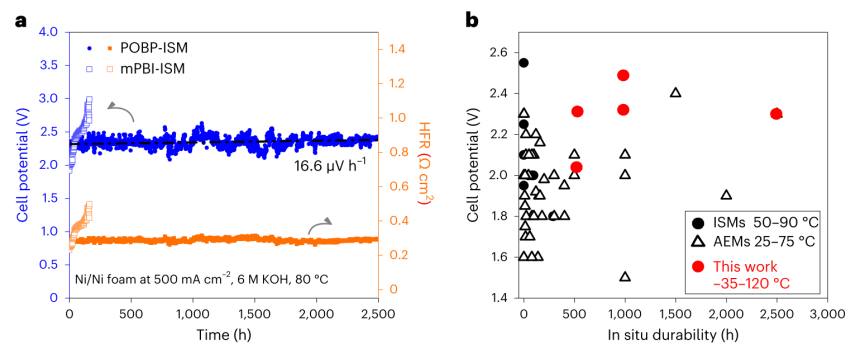 8 M KOH、80°C条件下稳定性超过15000小时