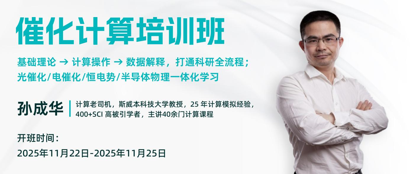 总结来说,科学指南针催化计算培训班以孙成华教授为核心,结合指南针学院的平台优势,为科研人员提供了一条高效路径。如果您正苦于模拟计算瓶颈,不妨借此机会突破自我,冲击高分论文。