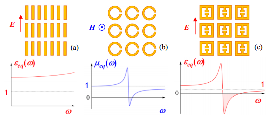 图1 三种具有表面夹杂物的人工材料的有效(等效)介电常数或磁性常数可能的频率行为。