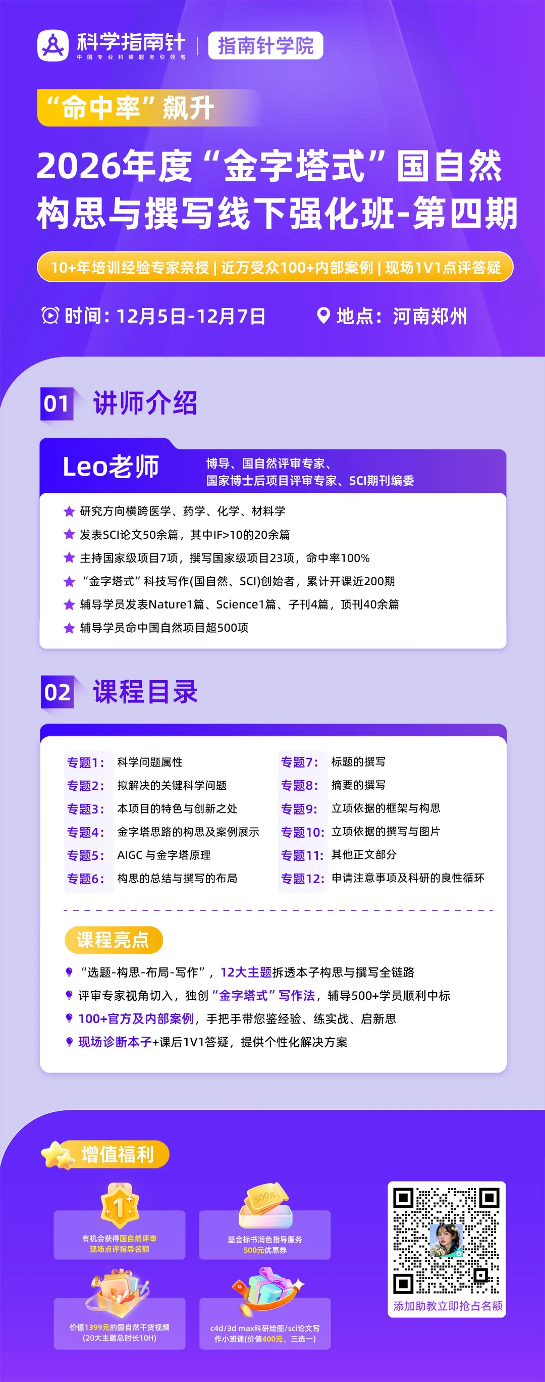 针对国自然申请中的共性难题,​专业的系统化培训能够帮助申请人少走弯路。科学指南针推出的《"金字塔式"国自然构思与撰写》课程,由资深评审专家Leo教授主讲,累计已帮助300余位科研人员提升申请质量。
