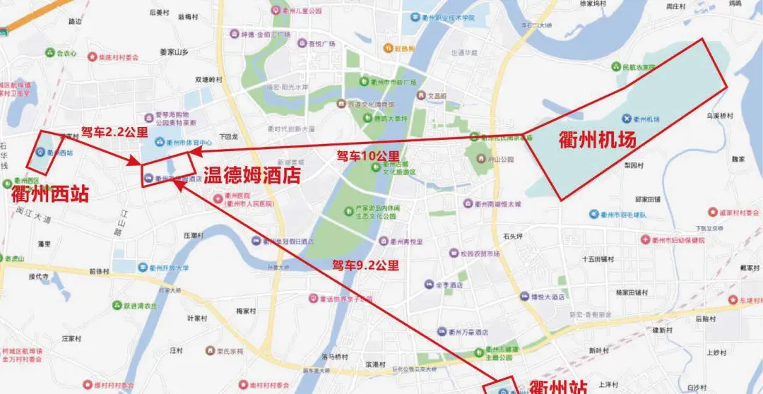 机场:衢州机场--温德姆酒店,驾车10公里,20分钟